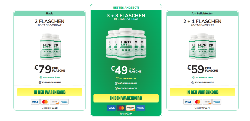 Wir empfehlen dringend, Lipolift ausschließlich über die offizielle Website zu kaufen, um sicherzustellen, dass Sie die echte, hochwertige Formel erhalten.